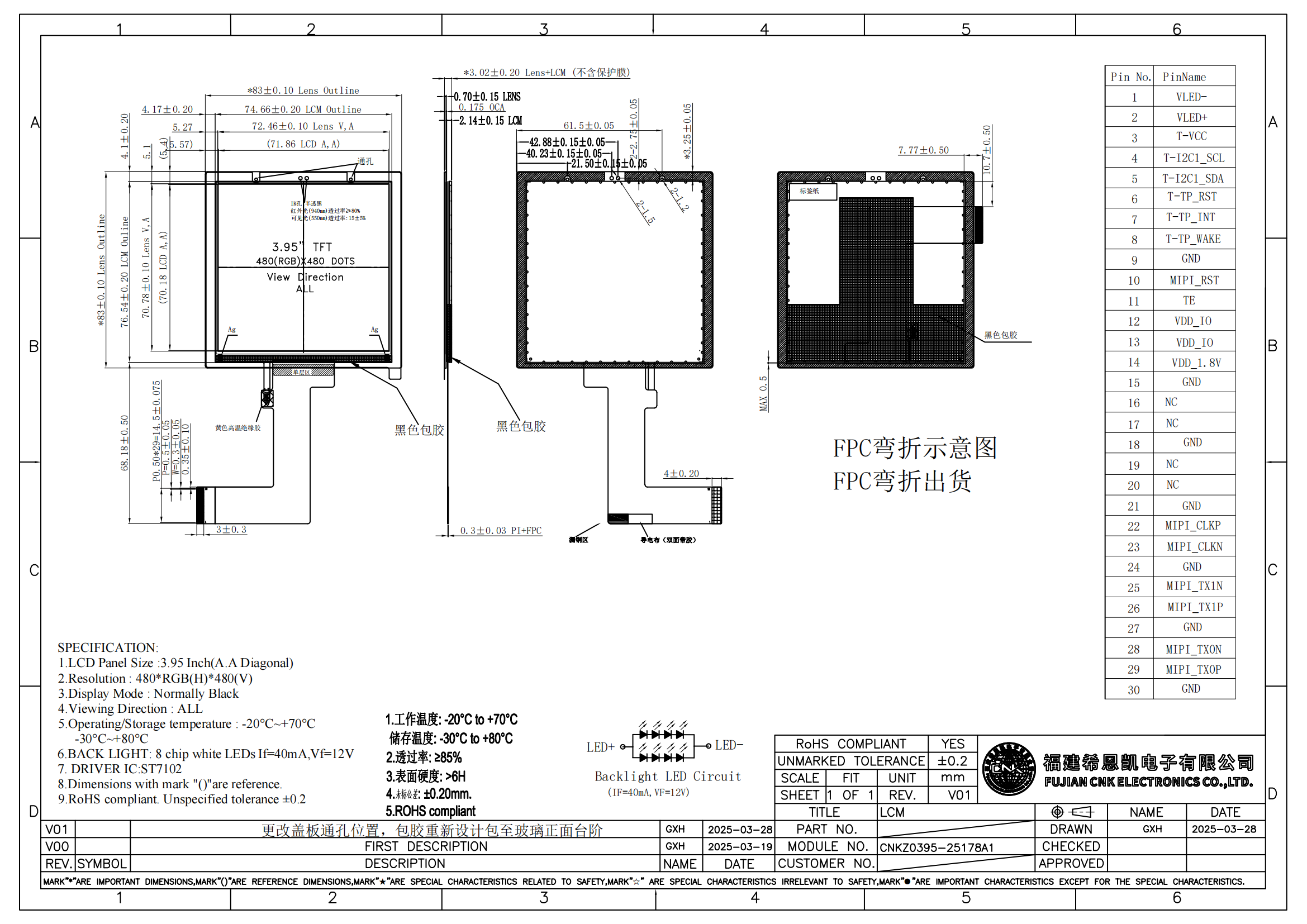 | Temperatura robocza | -20 ℃ ~ 70 ℃ | Interfejs | Dotyczy MIPI lub RGB |