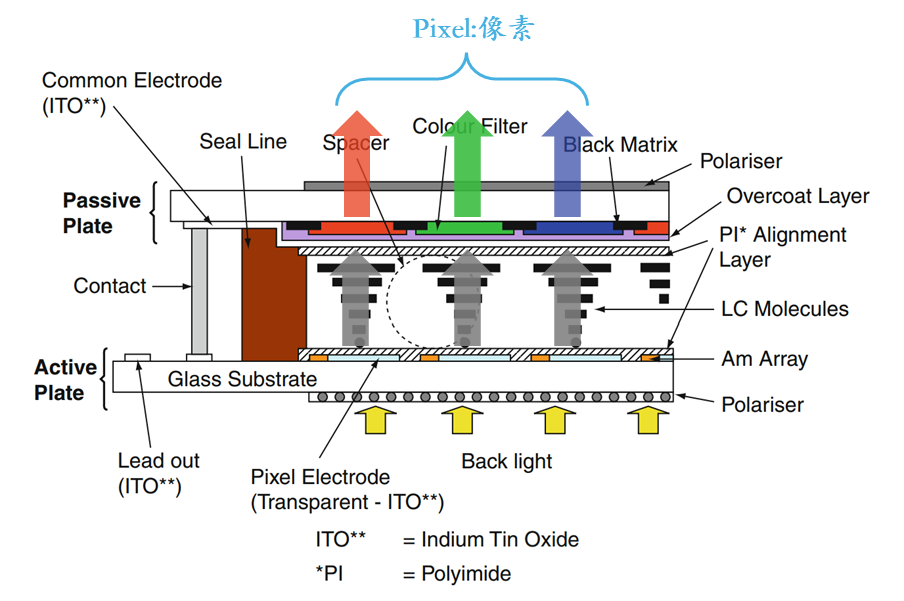 Wyświetlacz LCD (Liquid Crystal Display), jako najbardziej dojrzałe i powszechnie stosowane rozwiązanie wyświetlaczy, działa w oparciu o następującą podstawową zasadę: moduł podświetlenia emituje białe światło, które przechodzi przez polaryzatory i warstwę ciekłokrystaliczną, zanim dotrze do filtrów kolorów RGB w celu wytworzenia trzech podstawowych kolorów. Na koniec jasność każdego piksela reguluje się poprzez kontrolowanie orientacji cząsteczek ciekłego kryształu za pomocą przyłożonego napięcia. Proces ten opiera się na skoordynowanej pracy kilku kluczowych komponentów: modułu podświetlenia, matrycy TFT, warstwy ciekłokrystalicznej i filtrów barwnych.
