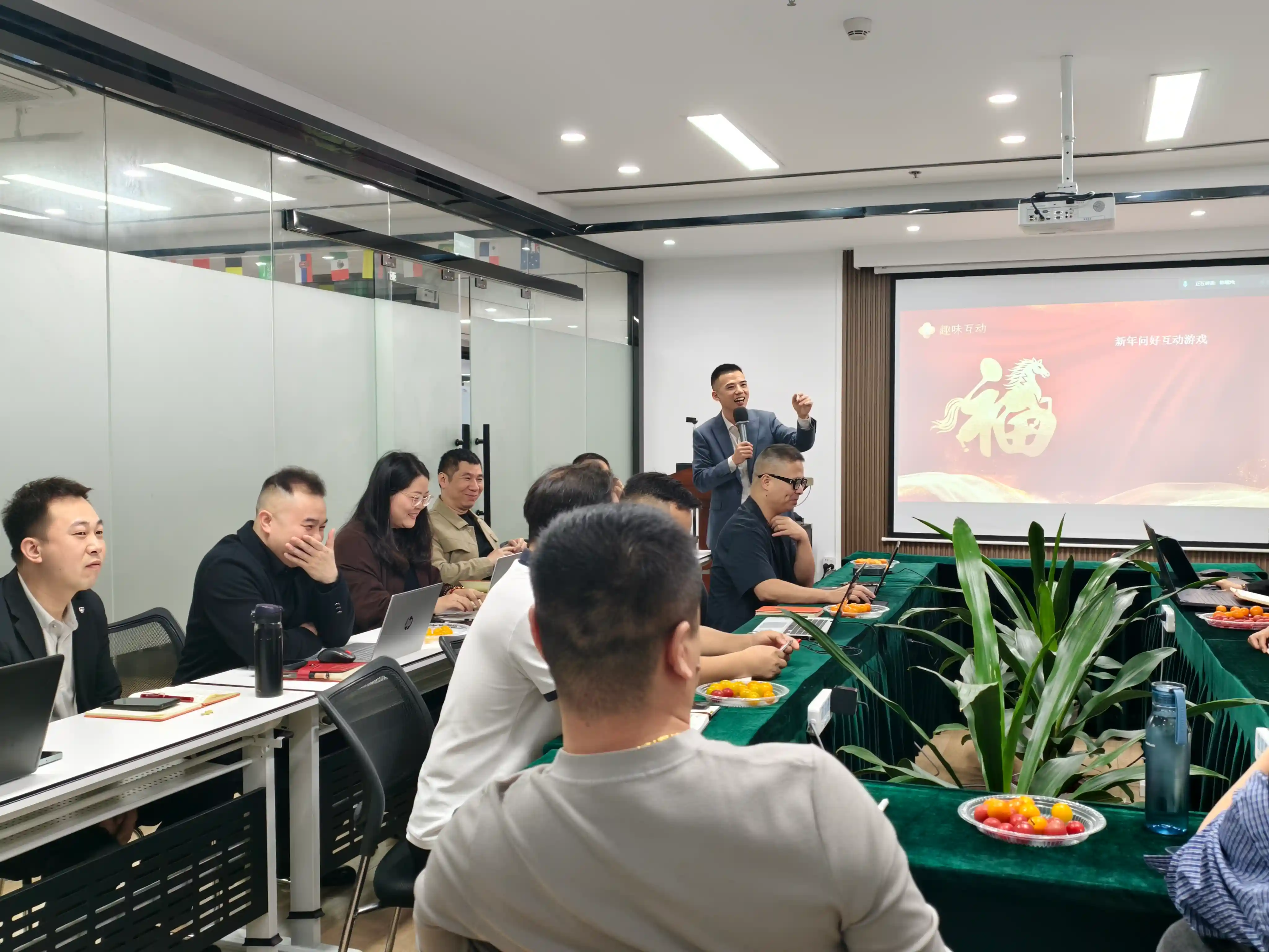 Wydarzenie rozpoczęło się wesołą i zabawną grą interaktywną „Pozdrowienia noworoczne”. Koledzy wymieniali się błogosławieństwami z okazji Roku Konia, pokonując dystanse śmiechem i radością, podkręcając atmosferę sceny. Uśmiechnięte twarze i szczere życzenia połączyły się w najcieplejszy ton zespołu.