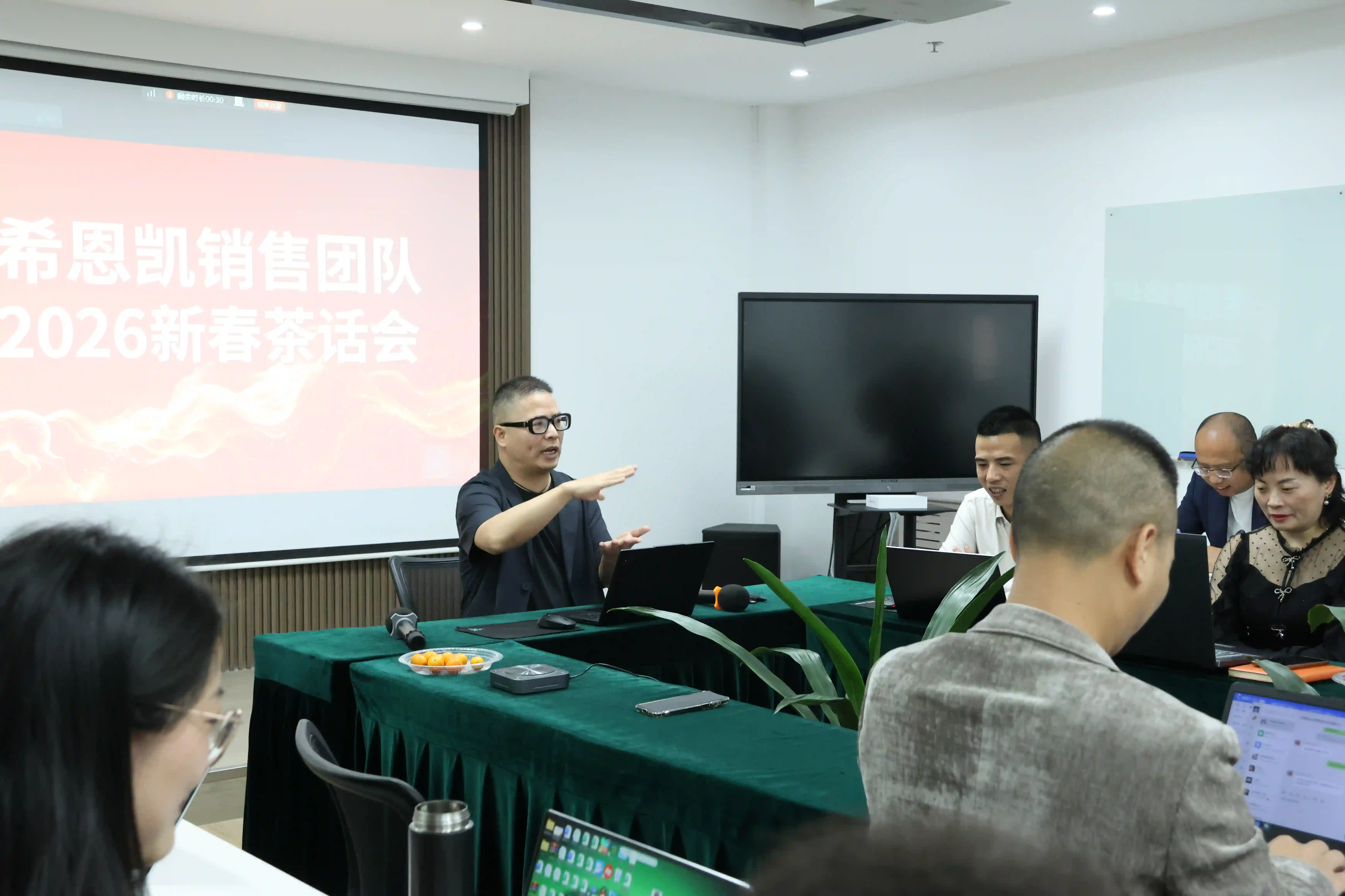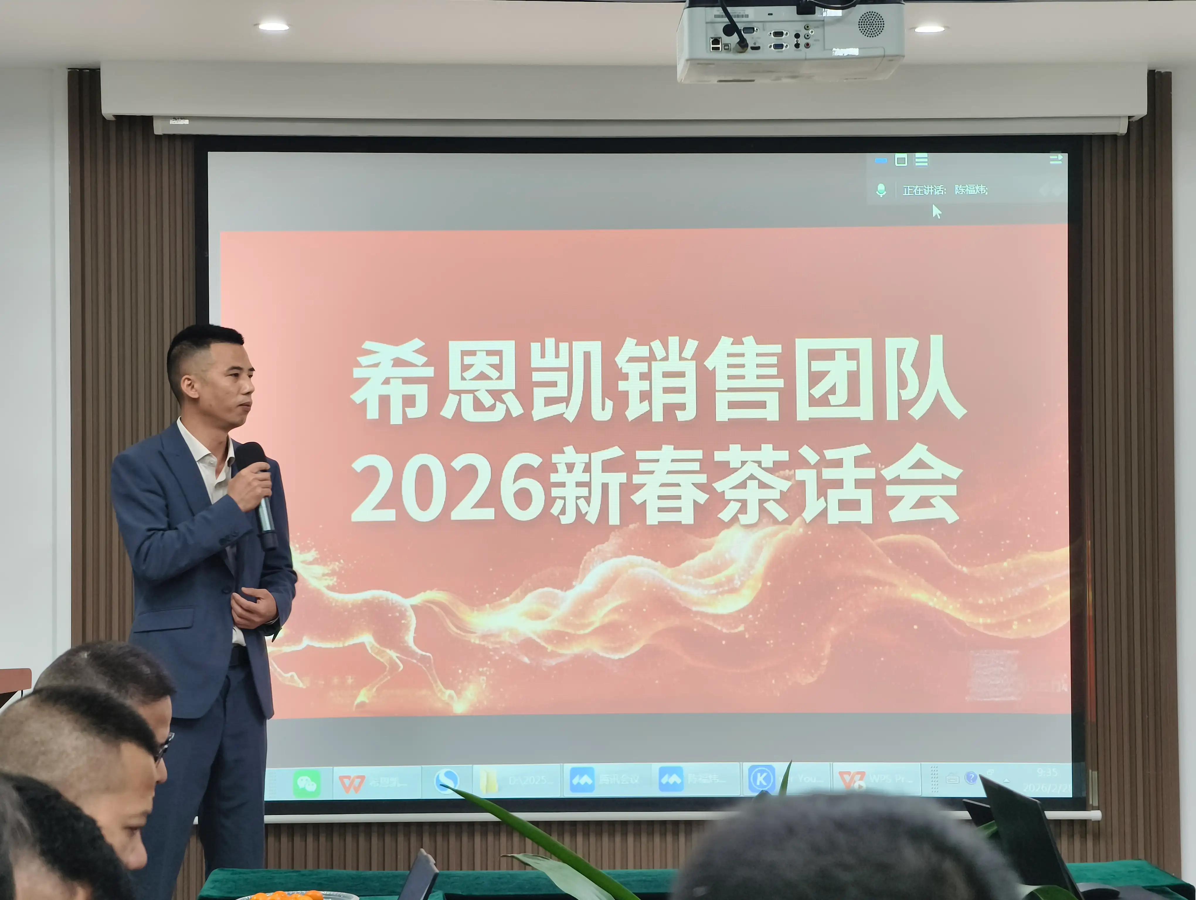 Prezes w pełni potwierdził osiągnięcia Działu Sprzedaży w 2025 roku i po kolei ustosunkował się do oczekiwań zgłaszanych przez poszczególne grupy. Czerpiąc mądrość z Tao Te Ching, wyjaśnił sposoby sprzedaży i rozwoju osobistego, podkreślając znaczenie wyznaczania celów i studiowania metod, samotranscendencji i innowacji. Podzielał także filozofie sprzedaży dotyczące wizerunku zewnętrznego, relacji międzyludzkich i więzi emocjonalnej. Ponadto przedstawił politykę firmy dotyczącą priorytetowej obsługi kluczowych klientów, wsparcia finansowego i zabezpieczenia projektów, zachęcając wszystkich do wzmacniania zaufania, proaktywnego badania potrzeb klientów i integrowania rozwoju osobistego z rozwojem firmy. Zakończył swoje wystąpienie zachęcając zespół do podjęcia wyzwań roku 2026 w nowym stylu i nowych oczekiwaniach. Kolejna sesja pytań i odpowiedzi jeszcze bardziej wyjaśniła kierunek i poprawiła morale zespołu.